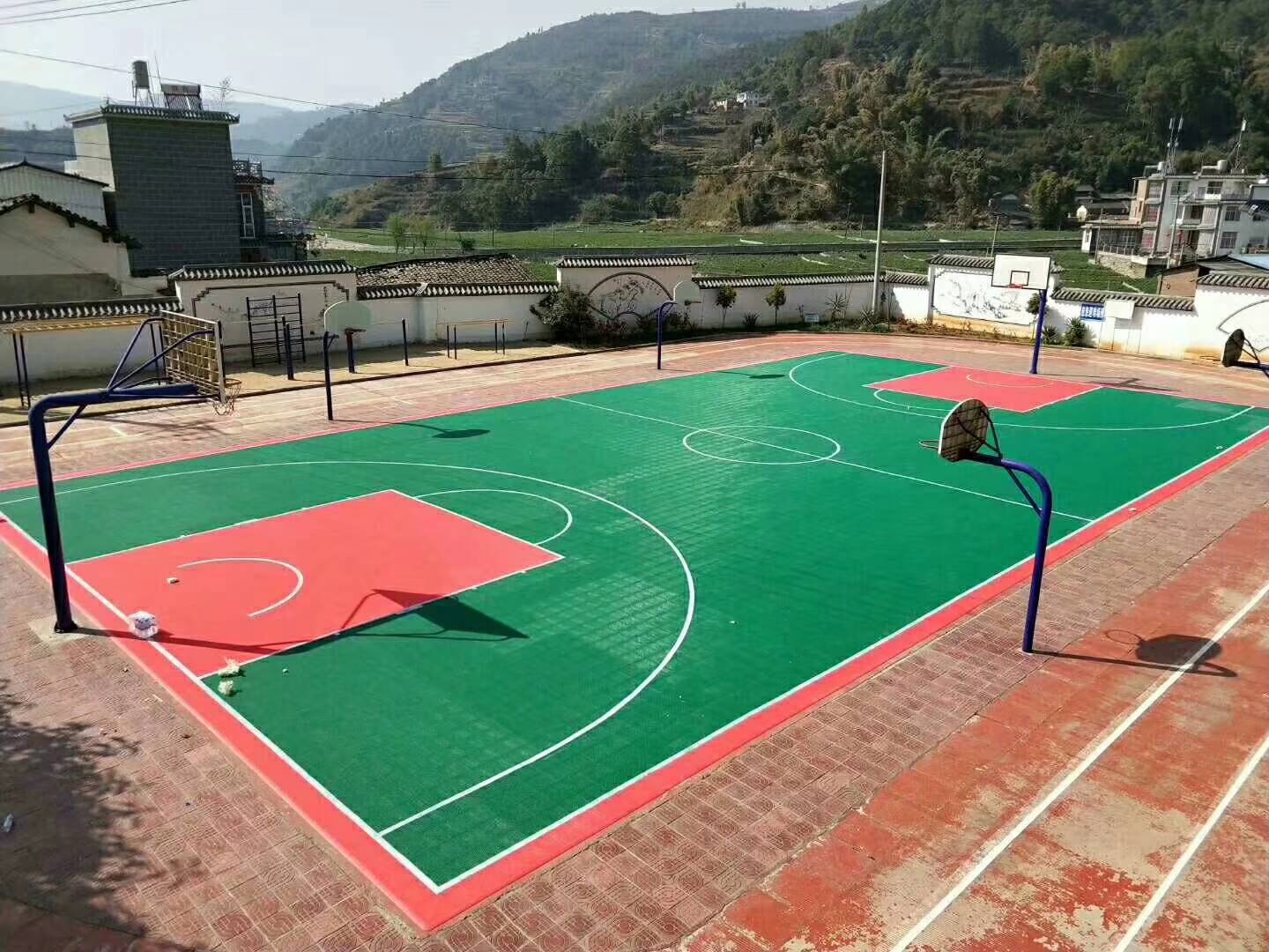 拼裝運(yùn)動(dòng)地板又稱懸浮地板,是多塊塑膠拼裝地板進(jìn)行拼裝的籃球場。