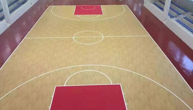 pvc籃球場材料目前適用于室內(nèi)籃球場使用,因?yàn)榧y路豐富,可以仿原木色以較低價(jià)格展現(xiàn)實(shí)木地板籃球場一樣的效果